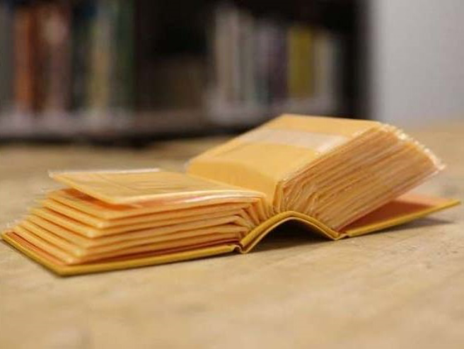 NY artist, designer and publisher Ben Denzer published 20 Slices in 2018. This art book is made from real slices of cheese (talk about a long shelf life!).