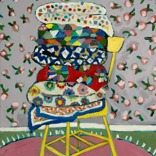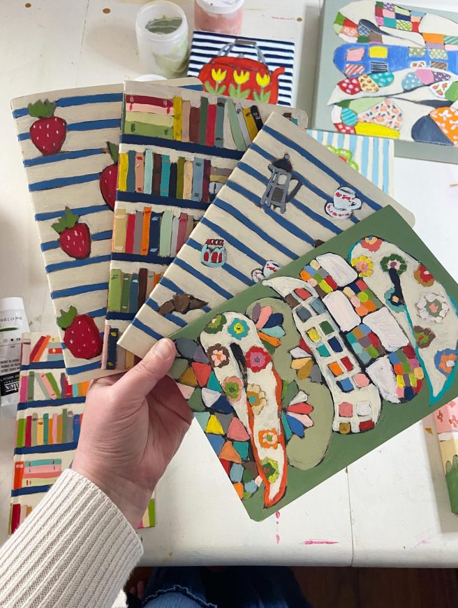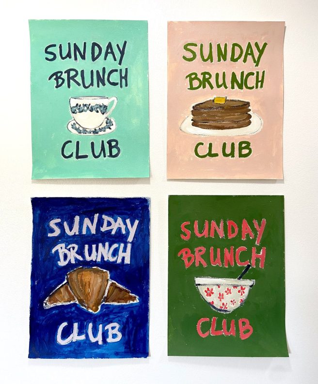In addition to the Sunday Brunch Collection, she’s created other themed painting collections, including “Quiet Corners,” “Summer Camp,” “Lively House,” “Les Femmes,” “Greenhouse,” and the more recent “Everyday Quilts.”