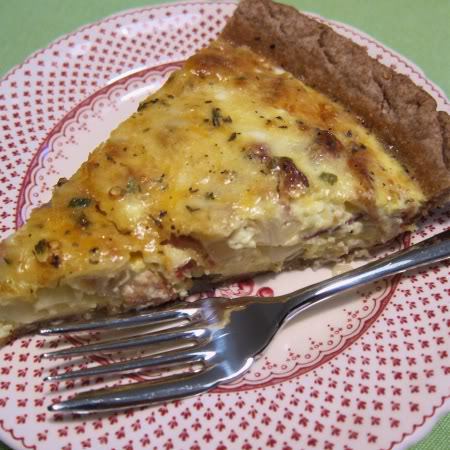 In a bowl, mix veggies/meat with cheese and herbs/salt. Spread evenly in piecrust.