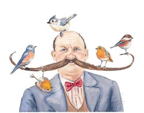 Cerebral dogs and cats wearing glasses! Birdies balancing on the edges of pretty china teacups! Other animals decked out in derby hats, bowties, berets, and tutus, some blowing bubbles, others stealing cupcakes! And a good number of them with mustaches :).