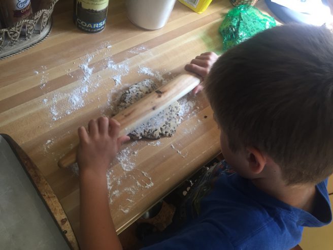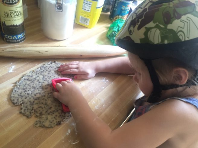 Matt’s daughter cutting out flashlight-shaped cookies.