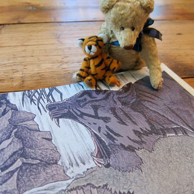 The first illustration I saw was an initial sketch Fred made for Rebecca – before he even signed the contract – to show her his idea for the style of the illustrations and his concept for the sub-narrative of reality being the darkness while the fantasy is illuminated by the light. He ended up selling the picture before we met, so I’m disappointed I don’t have it, but it will always be a favourite of mine. My other favourite – which seems to be a favourite of everyone who sees the book – is the spread featuring the Kraken crawling through the stones.