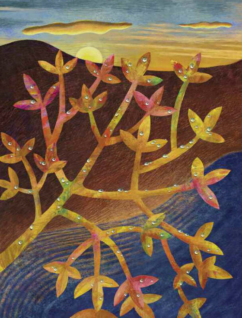 Drop by tiny drop, Little Water becomes a river, a lake, an ocean. Then it climbs to the sky, turning into a cloud until it returns “singing to our Mother Earth.”
