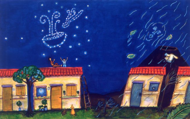 As in many of his books, Argueta expresses his affection and deep reverence for Mother Earth. Water is perhaps her greatest gift, essential to the web of life, as soft as it is forceful, mysterious and pervasive: