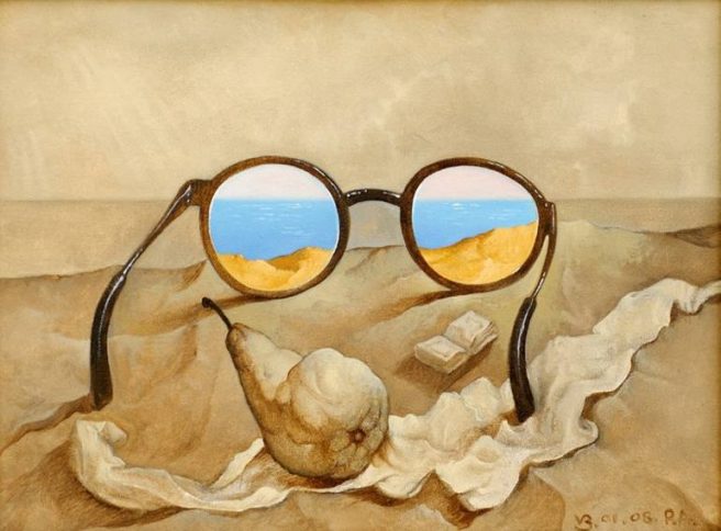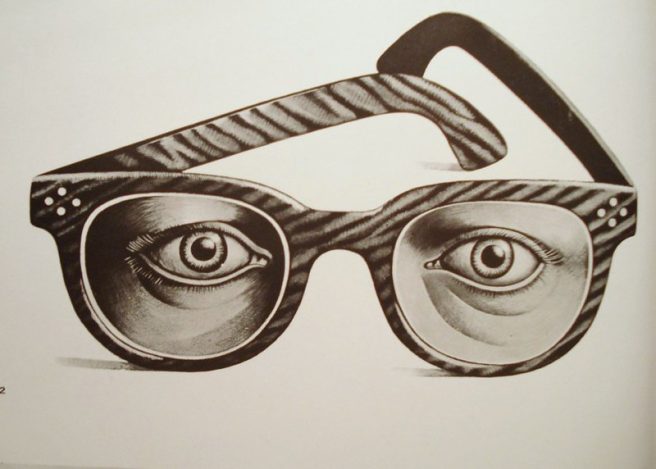 Perhaps the speaker is trying his darndest to get over a break-up, or to avoid falling in love with someone. His lighthearted, carefree tone, as he whistles “a melody of thanks” to his nose and ears, and sings “a song of gratitude” to the lens grinder and even the lenses themselves, is novel and amusing. Yet we sense his vulnerability, his determination to protect himself. He seems to be in denial.