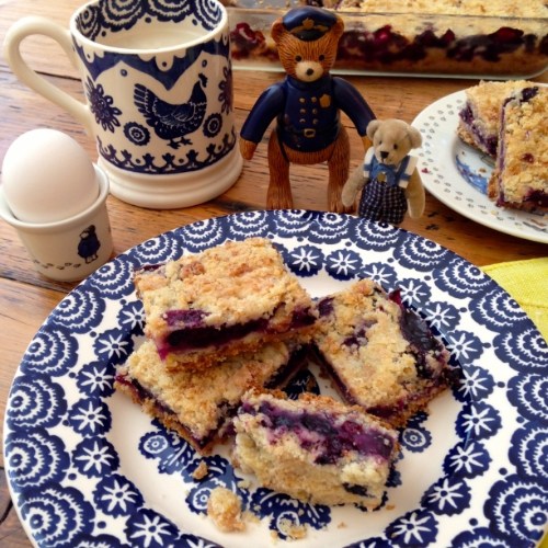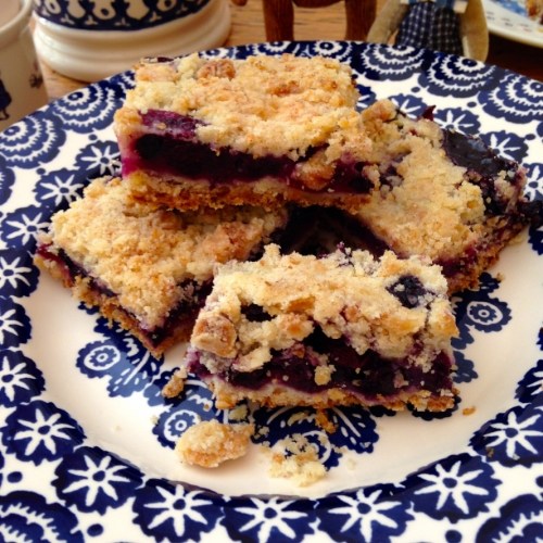 Please help yourself to a mug of coffee, tea or milk and a blueberry crumb bar — just the thing for hopping from blog to blog and reading some good poems. 🙂