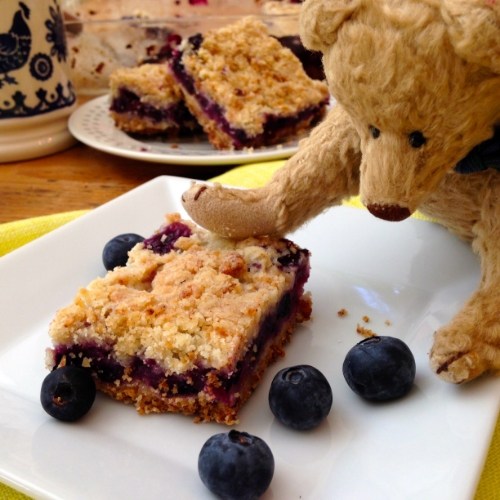Thanks for joining us today. If you’d like the Blueberry Crumb Bars recipe, click over to Smitten Kitchen. Cool thoroughly before slicing and enjoy with a side of vanilla ice cream or whipped cream. 🙂