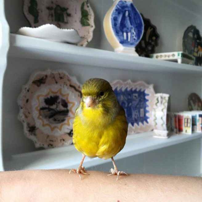 On any given day, you’re likely to find British illustrator and ceramicist Polly Fern in her studio happily painting with her canaries Olive and Morris nearby.