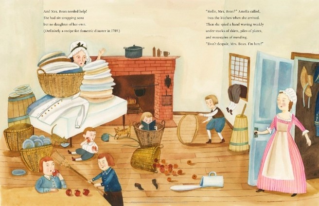 As an author for children and teens, I visit schools all over the country, and like to begin by asking students the difference between nonfiction and historical fiction. My new picture book, Independence Cake, is most decidedly fiction, as the subtitle makes clear: A Revolutionary Confection Inspired by Amelia Simmons, Whose True History is Unfortunately Unknown. In this light-hearted story with delicious illustrations by the incomparable Giselle Potter, we meet an orphan girl named Amelia, who is sent by the town to live with the fictional Bean family to help the exhausted mother of six sons and no daughter (“Definitely a recipe for domestic disaster in 1789”).
