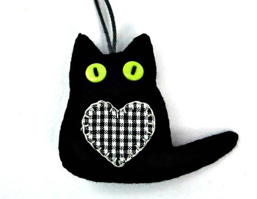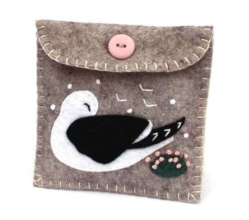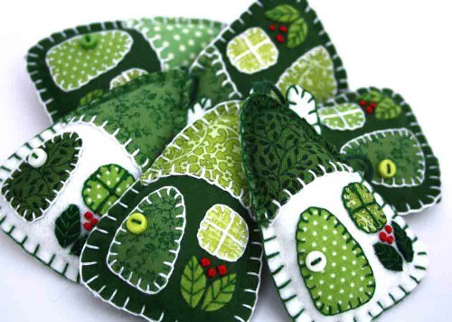 In addition to felt ornaments, Sylvia makes wonderful wallhangings, coin purses and phone cases. She does all the designing, cutting, sewing, and decorating in her seaside home in South-west Ireland, and draws inspiration from the dramatic landscapes and colorful fishing towns. Sounds like an idyllic setting for an artist, don’t you think?