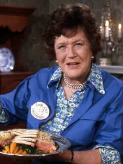 And why not? In just 48 pages, Jessie has accomplished the seemingly impossible, chronicling Julia’s entire amazing life!: as a “gangly girl from Pasadena,” her prankster days at Smith College, her stint doing Top Secret work for the OSS in WWII and marrying bon vivant Paul Child, learning to cook at Le Cordon Bleu in Paris, traveling to Germany and Norway, writing and publishing her cookbook masterpiece, and finally launching her TV chef career. Yes, it’s all here, in this frenetic comic-scrapbook hybrid that perfectly captures Julia’s boundless energy and contaigious joie de vivre. There’s even a 32-step recipe for Chicken Galantine (“Here’s a little something I just whipped up!”) and Jessie’s very own recipe for Crepes. I’m sure Julia would get a kick out of every scrumptious detail. Formidable!