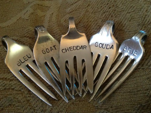 Bella Jackson Studios of Napa, California, lovingly hand stamps delicious bon mots on silver knives, forks and spoons. They’ve got something for everyone — lines of poetry, witticisms, puns, nursery rhymes, holiday greetings, expressions of endearment, names of cheeses and spices. And of course they’ll custom stamp anything you like to fit the occasion. I like the idea of pieces selected for their charm and uniqueness, each with a distinctive patina and the “imperfections” resulting from hand-stamping one letter at a time.