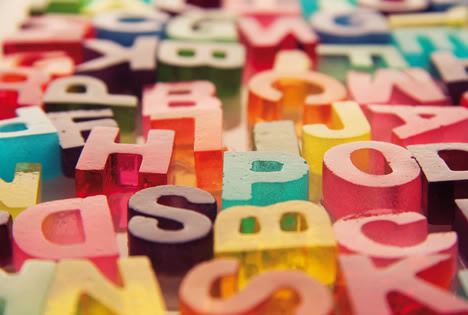 A little something to satisfy your sweet tooth: edible letters made from sugar and gelatin created by Spanish graphic and industrial designers Aranxa Esteve and Lucia Rallo.