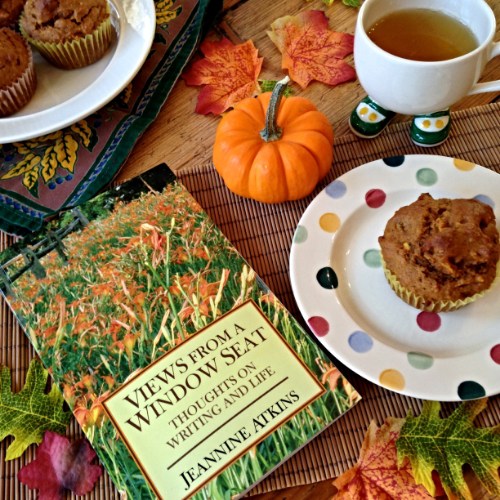 Please help yourself to a cup of tea and an Apple Pumpkin Walnut Muffin (recipe here). The footed teacup will make it easier to amble from blog to blog as you savor all the wonderful poems, reviews, and poetic musings others are sharing today. The muffins are a Fall tradition in our house — no better way to celebrate the season than to bite into apples and pumpkin at the same time. 🙂
