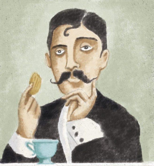 "I'll always remember these madeleines," I say. "Will you?" I ask, toasting her glass with my teacup. "Certainly. And your books will remind me." "All things find their way into a poem." "Like madeleines do," she proclaims, drinking down her tumbler of milk until nothing is left but the line of a thin mustache, like Proust's.