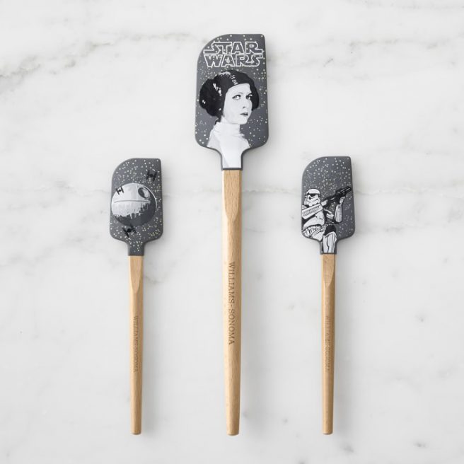 2. Long ago in a galaxy far, far away, a Jedi Master Chef used the Force to whip up out-of-this-world treats. No secret ingredients or light sabers necessary when wielding just the right spatula for just the right batter. Check out this set of Star Wars™ spatulas— one medium and two mini — all with durable silicone heads (heat resistant up to 600 degrees), and guaranteed not to chip or crack. Love the rounded beech wood handles, too!