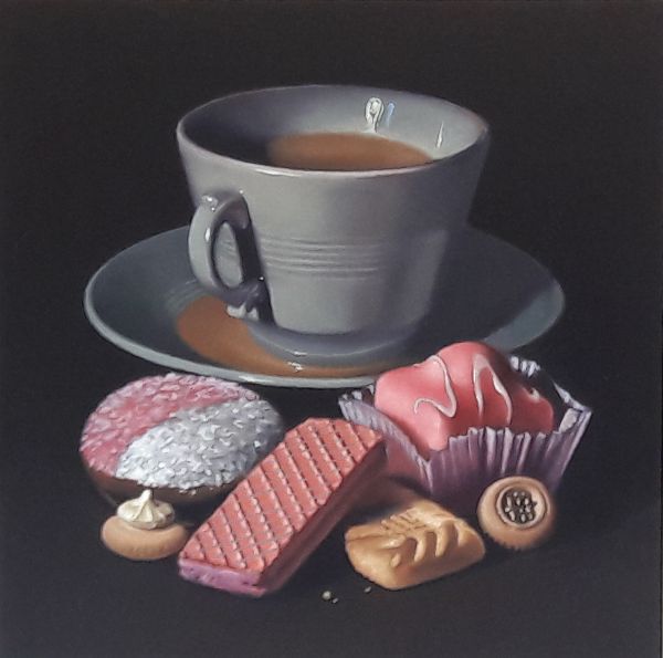 Her work reflects her love of the traditional still lives of the Dutch Golden Age, and she paints mainly on board or wooden panels. I suppose one could categorize her paintings as “photorealistic.”