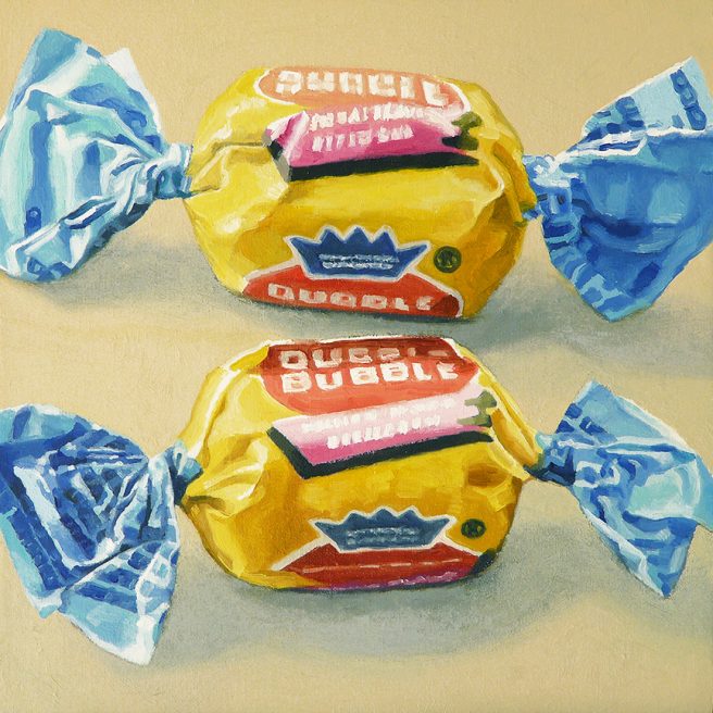 Those of you who nosh here regularly know I have a penchant for photorealistic paintings. Especially of food. It’s a good calorie-free, guilt-free way to indulge (my eyes are always happy to do the chewing). 🙂