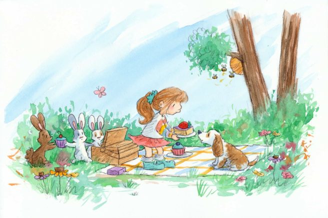 After graduating with a Fine Arts degree from Northampton University, Emily worked as an estate agent for about a decade. She then met her husband who encouraged her to start drawing again. They moved into a beautiful old cottage with apple trees in the garden and a family of bunnies under the hedge — quite an idyllic setting for creative work.