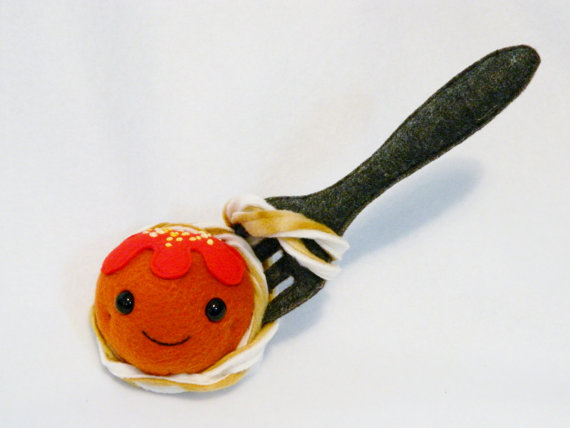 I love to laugh and be silly with my family. I usually watch or listen to my favorite TV show, Seinfeld, while I sew. I quote it often to people who look at me like I’m crazy. At my day job I listen to comedy pod casts on my headphones and laugh out loud like a weirdo while I paint. Comedy and humor make my life more fun and I think they make my toys more fun as well. I have a blast brainstorming with my husband and kids who also have great senses of humor. They come up with some of the best and most hilarious ideas for toys! My oldest child came up with the meatball and spaghetti on the fork plush. She keeps a running list of her ideas and frequently asks me when I will make the next one. Of course she always expects the first prototype to become a part of her own collection!