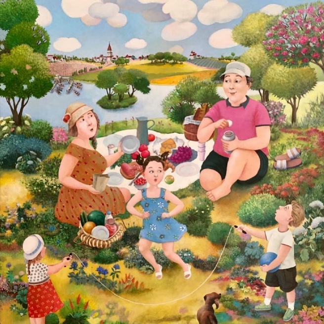 Her dynamic and joyful scenes from everyday life, sometimes laced with a touch of humor or irony, are widely accessible because of their uncomplicated universal themes.