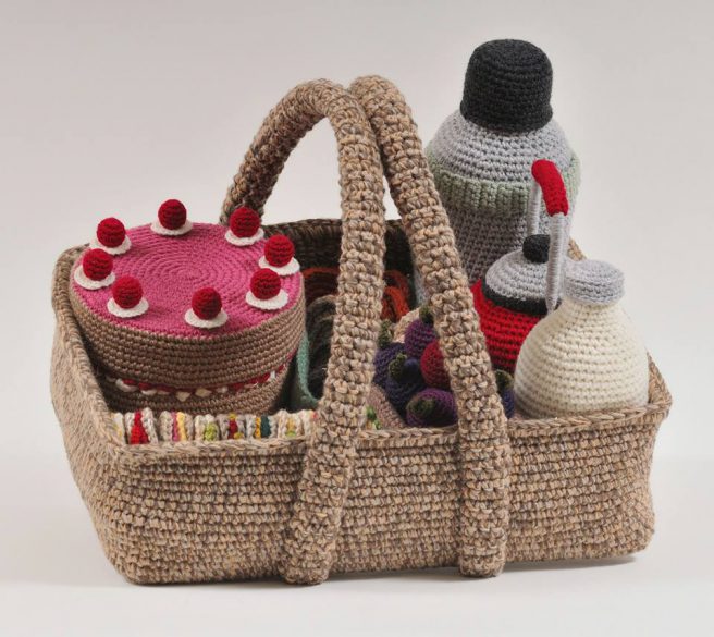 He’s been experimenting and perfecting all manner of applications ever since, recently creating imaginative tea cosies, retro appliances, and platters of colorful food. Most of the pieces shown in this post were part of a large-scale exhibition held at the Michael Reid Gallery in Sydney last year. It was called “Cocktail Hour” — retro-domestic bliss with a touch of humor.