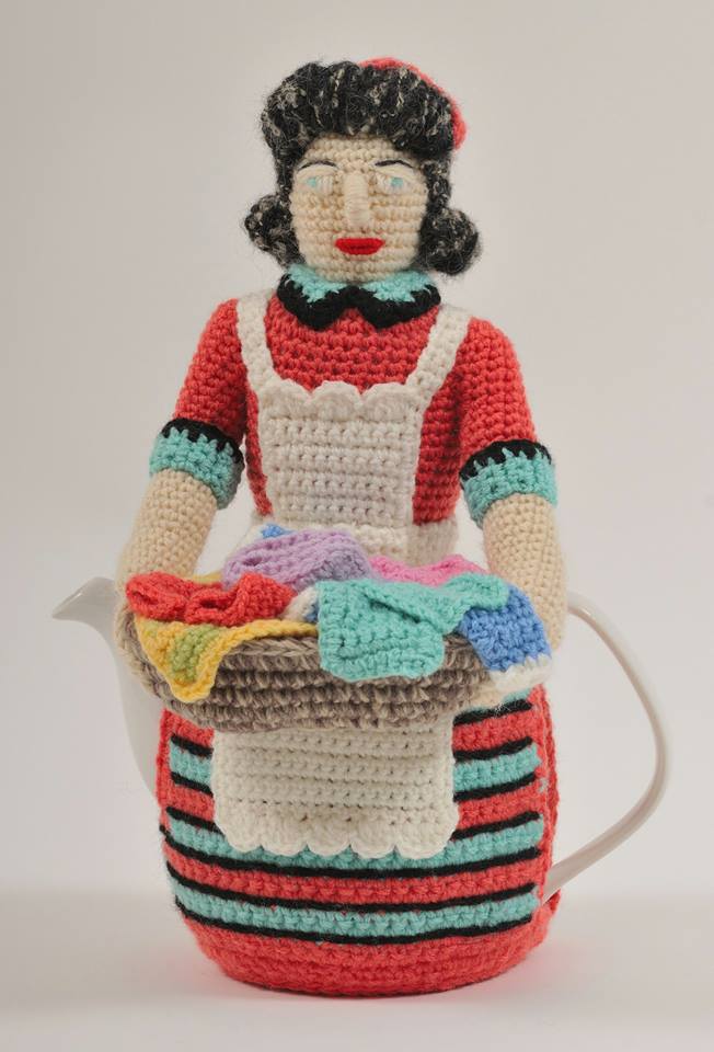 For his tea cosies, he’ll first crochet a traditional cover for the base, then build a 3D form out of foam or wire for whatever animal, person or object he wants to add, and then crochet a cover for it. Finally, he’ll crochet any other loose accessories or finishing details to sew on later.
