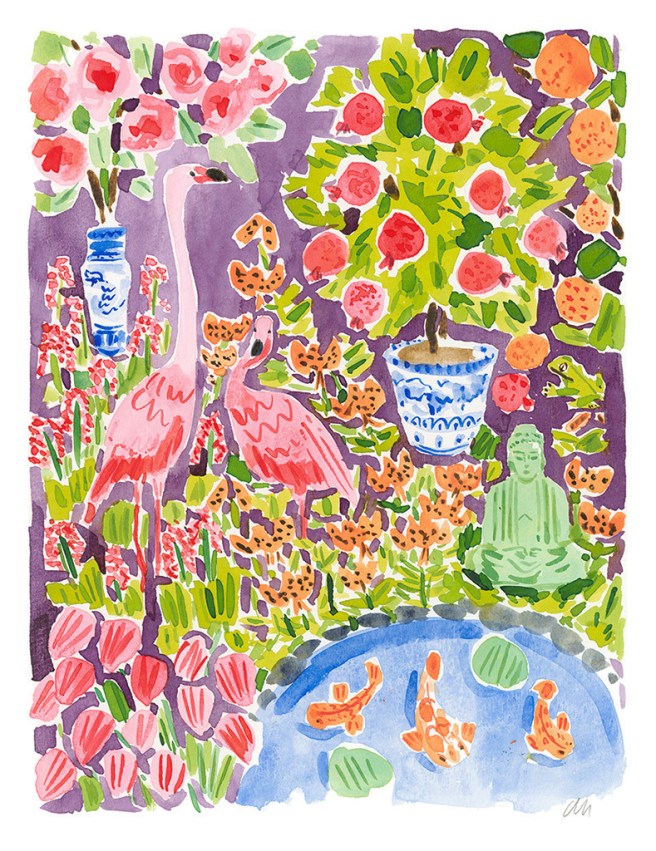 Whether it’s her acrylic or watercolor paintings, illustration work, or pen-and-ink drawings, I like them all.